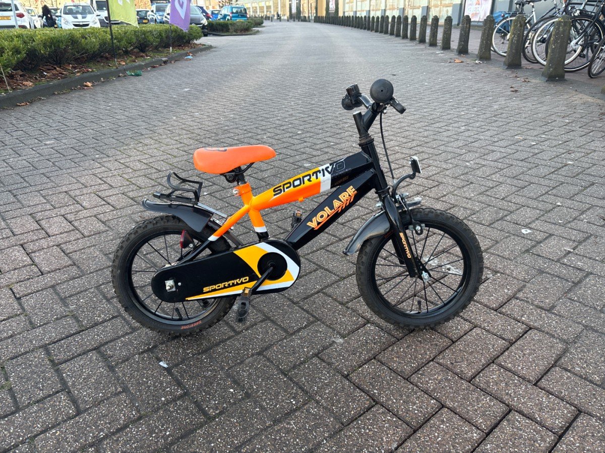 Volare Sportivo Jongensfiets Zwart/Oranje 14 inch is een stoere en veilige kinderfiets, ideaal voor jonge fietsers. Ten eerste zorgt het sportieve zwart-oranje design voor een opvallende uitstraling. Daarnaast biedt de stevige constructie extra stabiliteit en veiligheid. Bovendien is de fiets afgestemd op kinderen met een lichaamslengte passend bij 14 inch. Kortom, een betrouwbare jongensfiets om met plezier te leren fietsen.